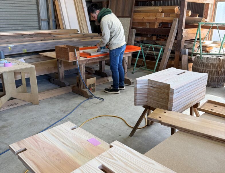 杉のパネルでつくる組み立て式什器。職人が、工場で仕上げる木の仕事