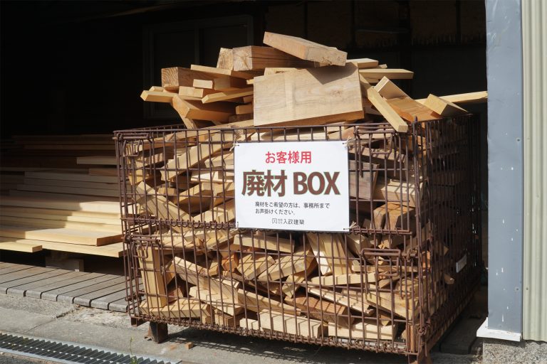 DIYなどにご利用いただける木切れ(端材)あります。大工加工場の入口に「廃材BOX」を設置しました! お知らせ≫ 廃材供給が追い付かない時がありますので、必ず来社前にお電話にてご確認ください(0120-307-103入政 … 続きを読む 廃材BOX設置しました!【浜松市工務店】