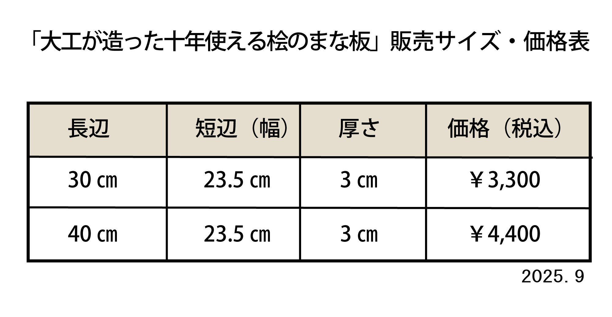 大工が造った10年使える桧のまな板」購入お問合せ先:入政建築(いりまさけんちく)0120-307-103〈8:00~17:00 祝休〉