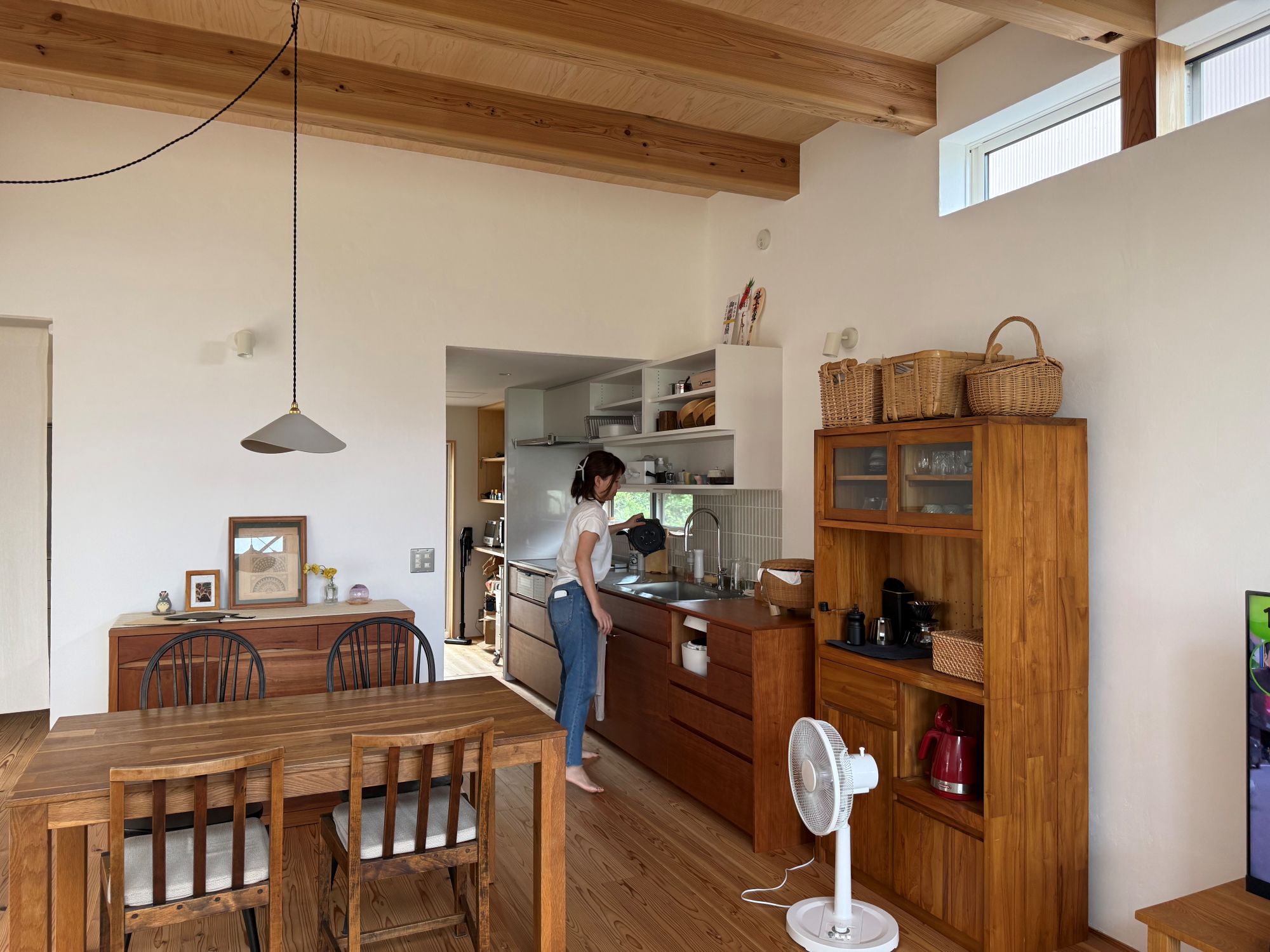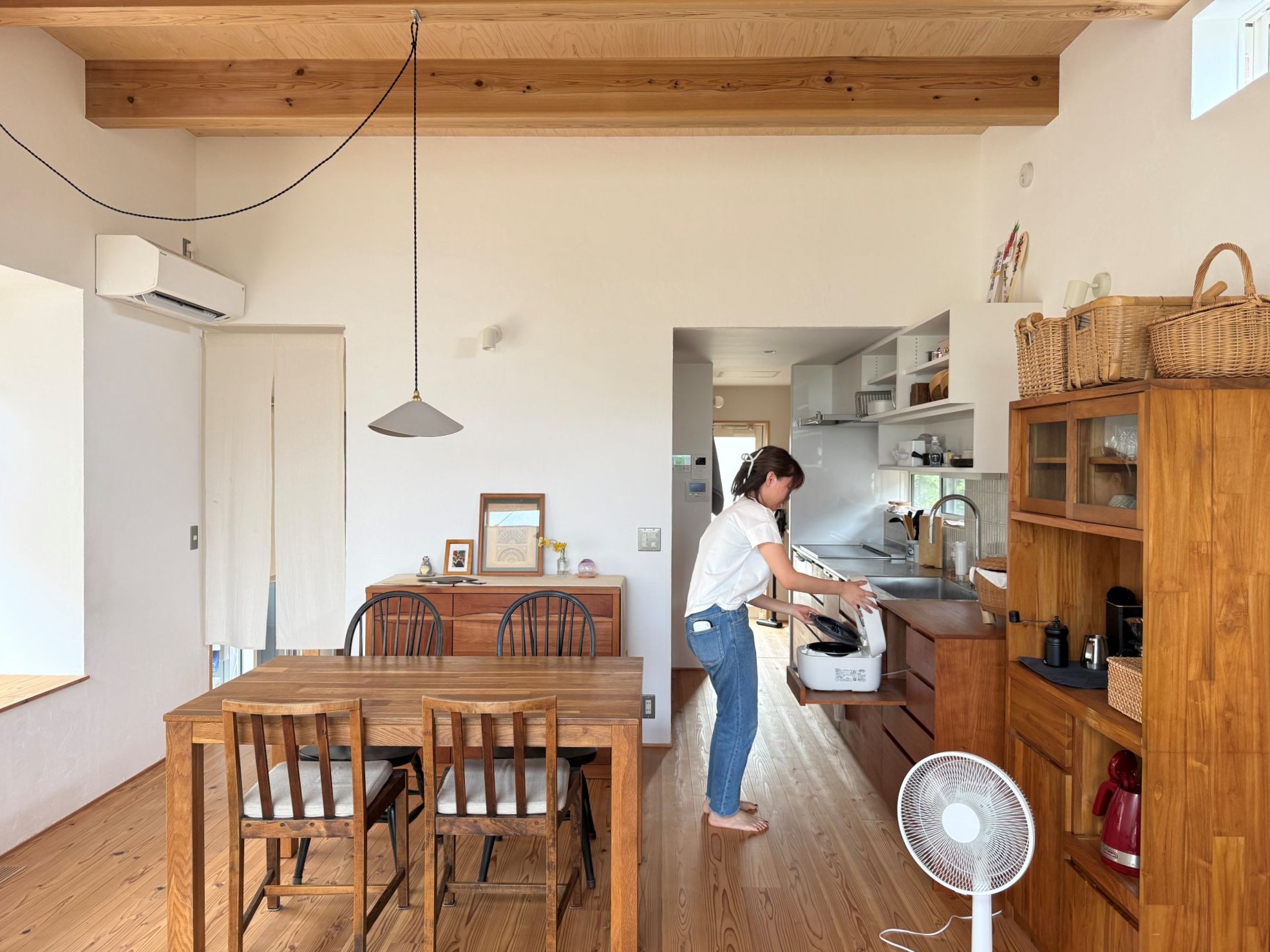 梁や柱がそのまま空間をかたちづくり、木が持つ温もりや力強さを、住まい手が毎日感じられるようになっています。