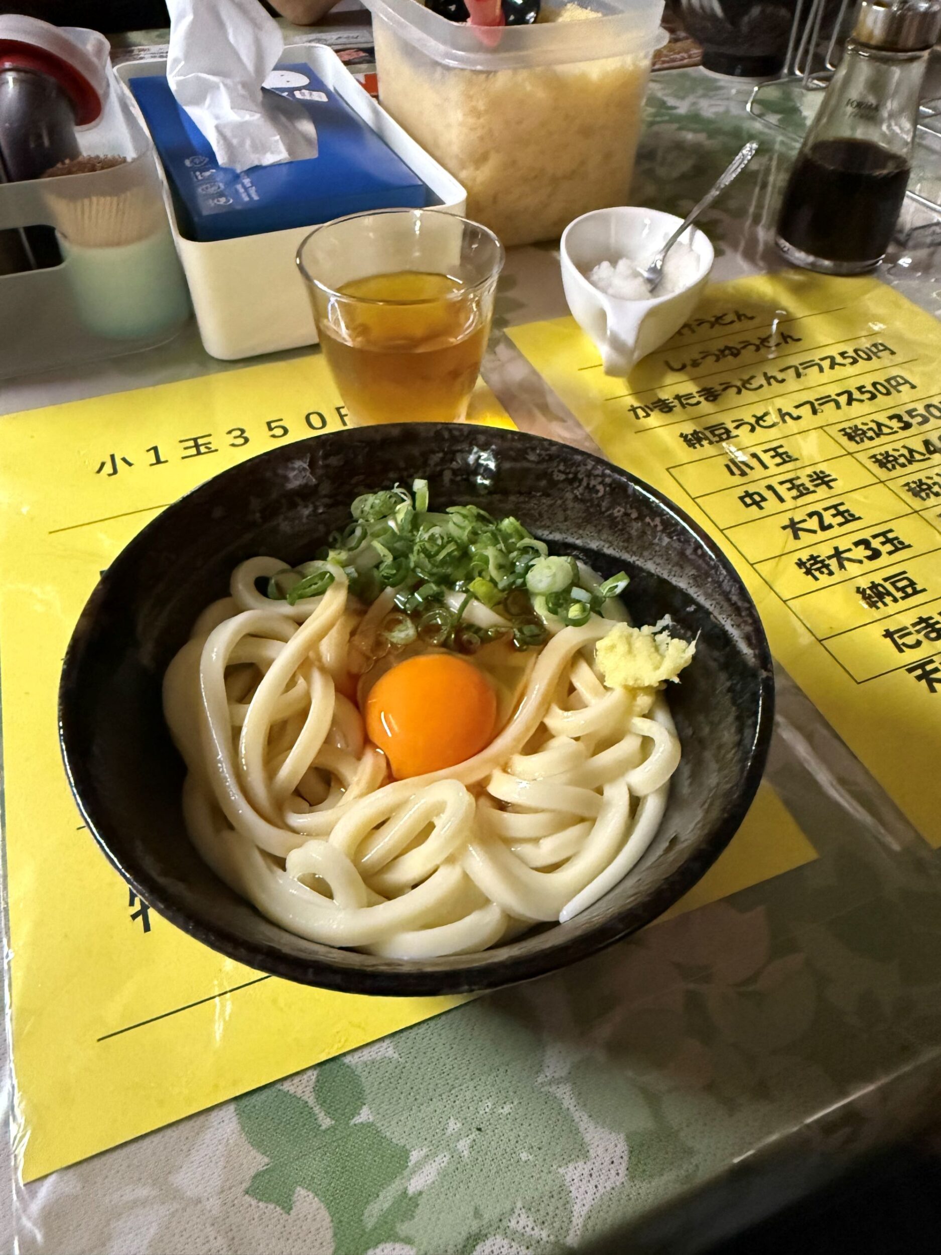 朝は、上杉食品さんで、さぬきうどんを食す。