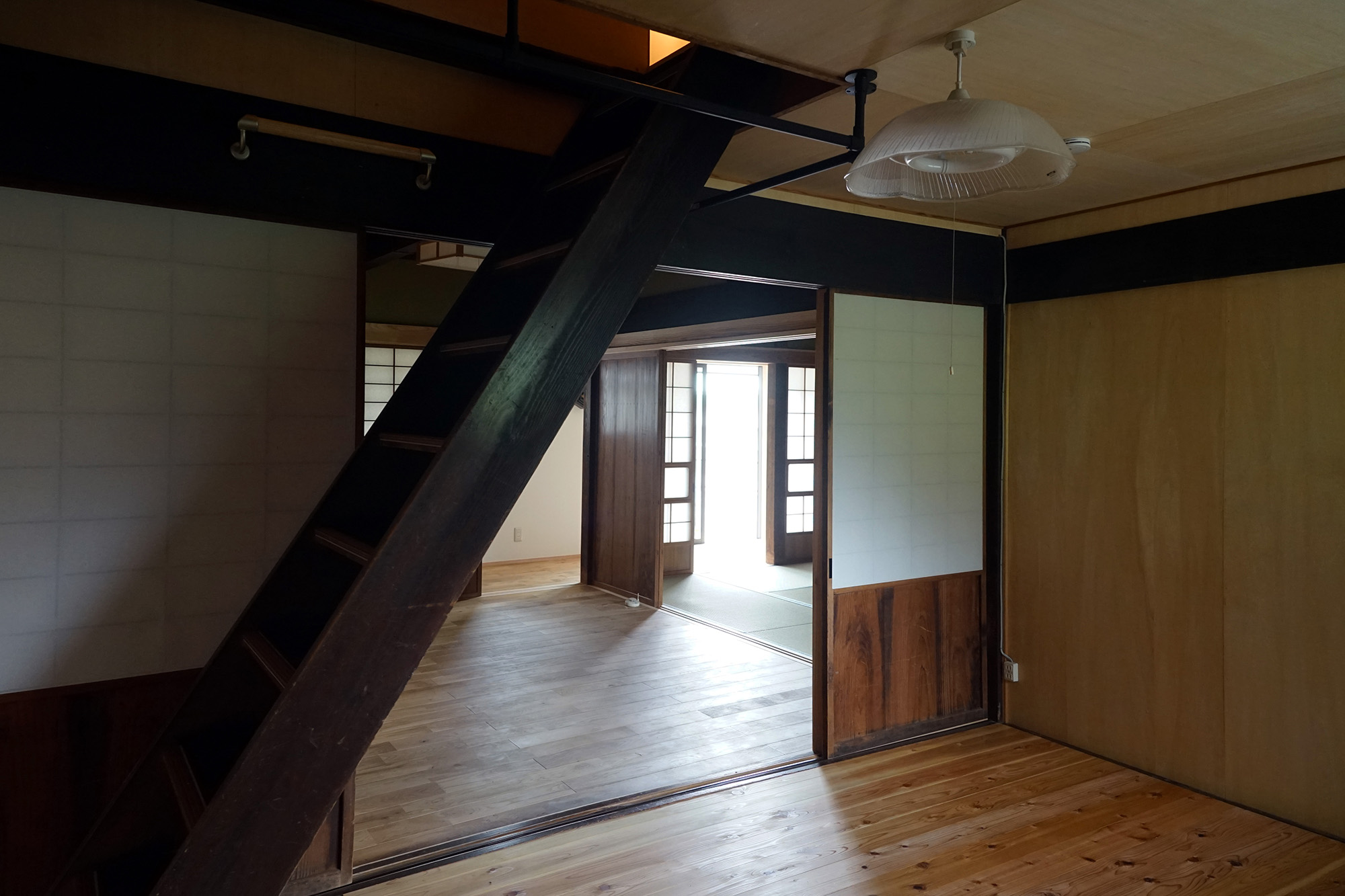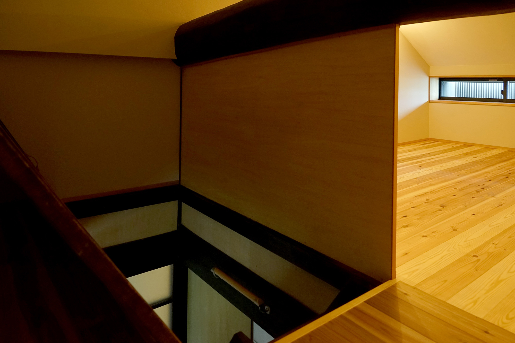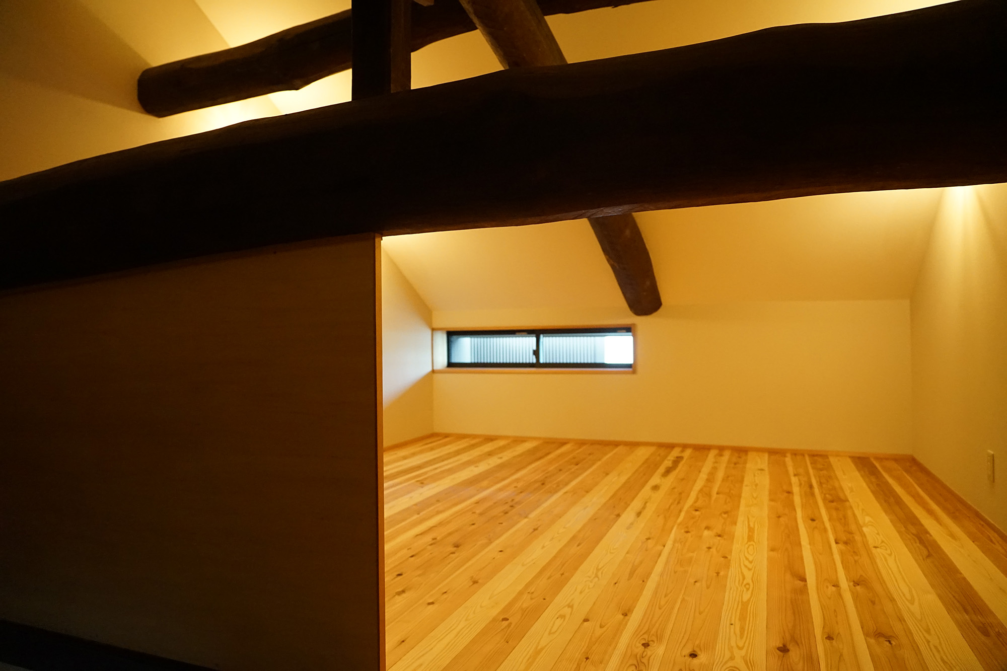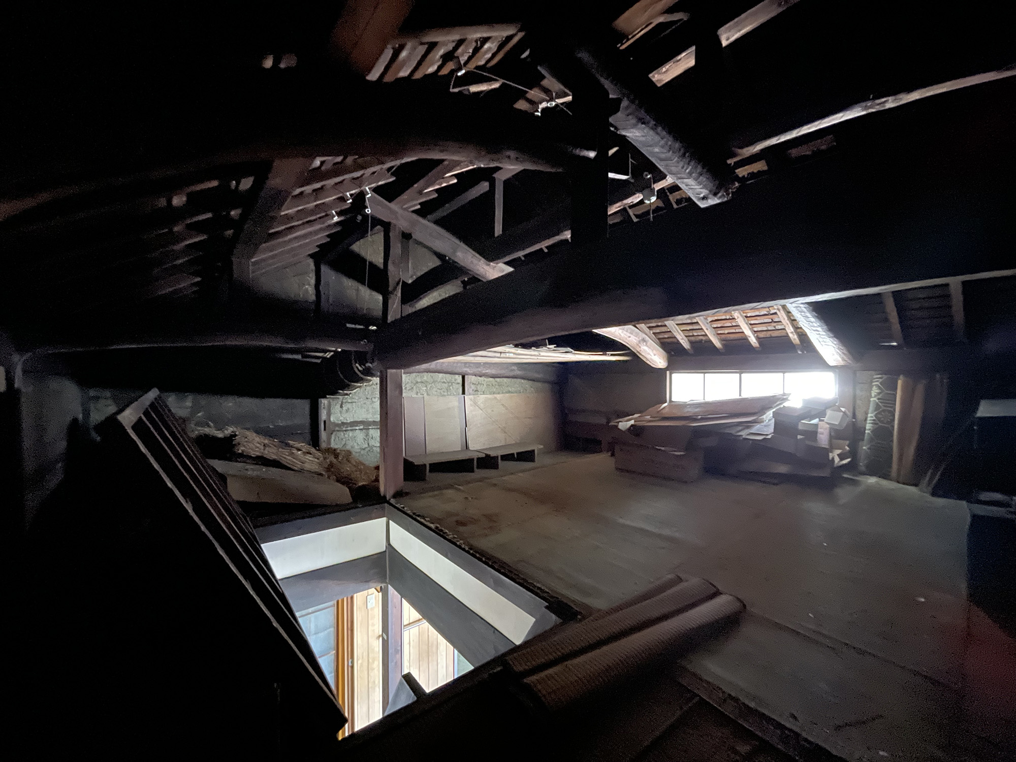 長らく使われていなかった小屋裏は、古民家らしい階段で上がる特別な空間。小屋裏は音漏れしにくい特徴から、ホームシアターや書斎に適するといわれています。