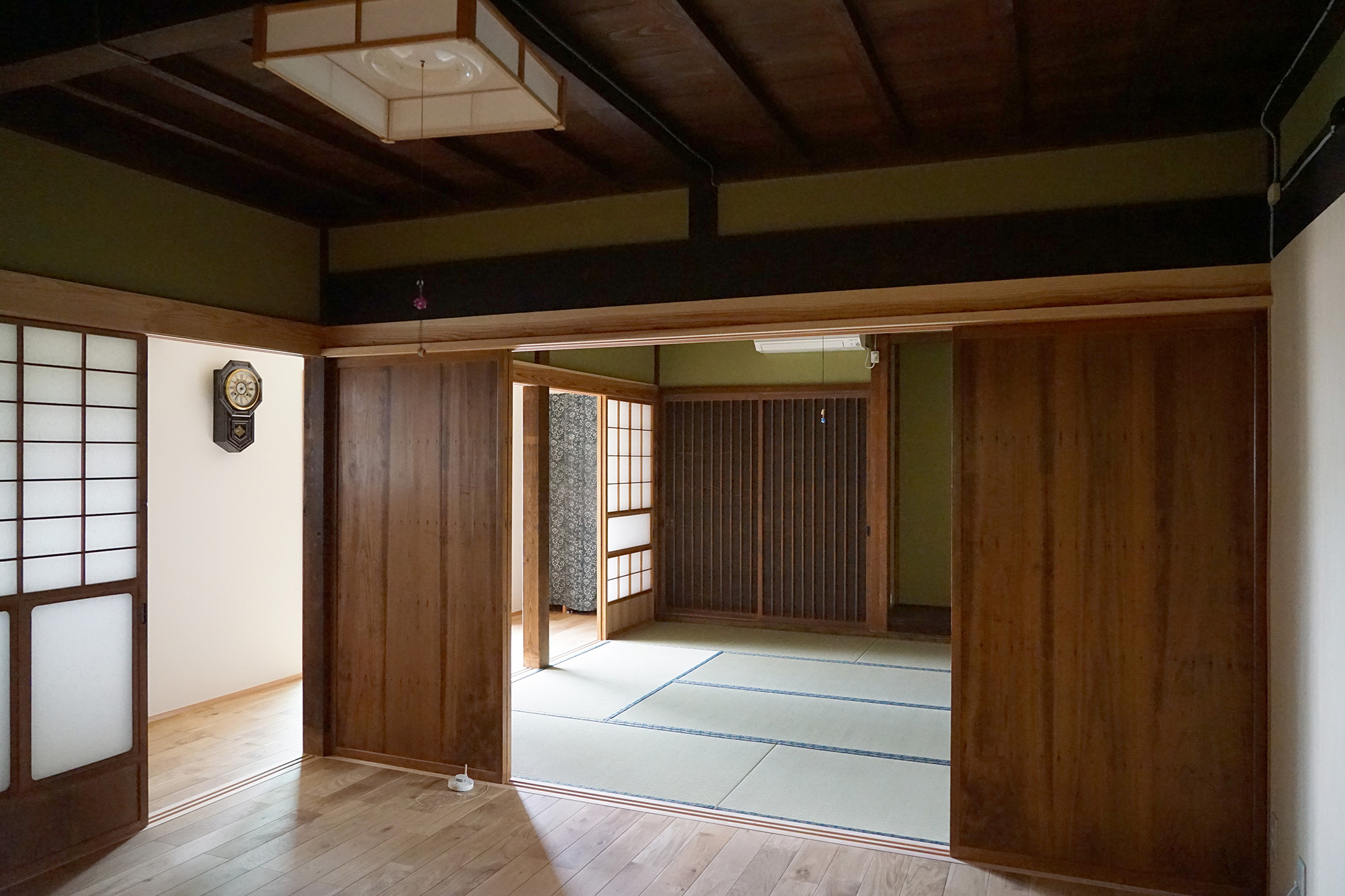 ご家族の主な生活は、旧家に隣接する増築部分で営まれていましたが、60代の施主さんにとって母屋には特別な思い入れがあり、「再びここを終の棲家とし、次の世代へも残していきたい」というご希望がありました。工事期間は9カ月。昔ながらの佇まいを守りつつ、暑さ・寒さの改善と耐震補強を中心に、住まい全体を整えました。