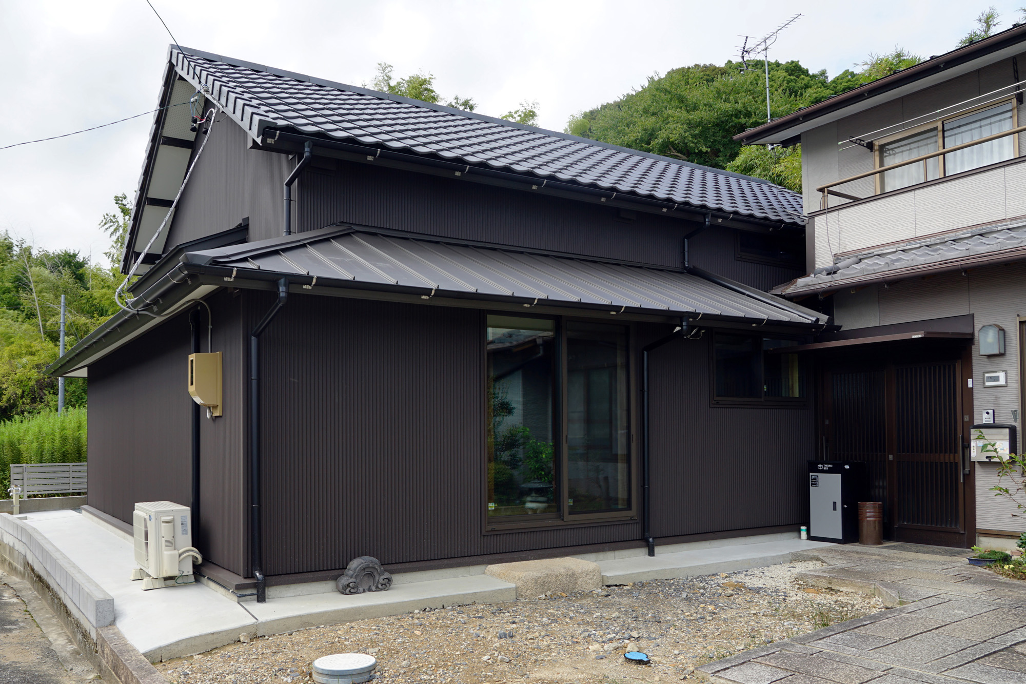 リベーション内容〉構造補強・断熱改修・外壁張替・屋根葺替え設備の入替え、新設土間部分の減築と間取り変更屋根葺替え など