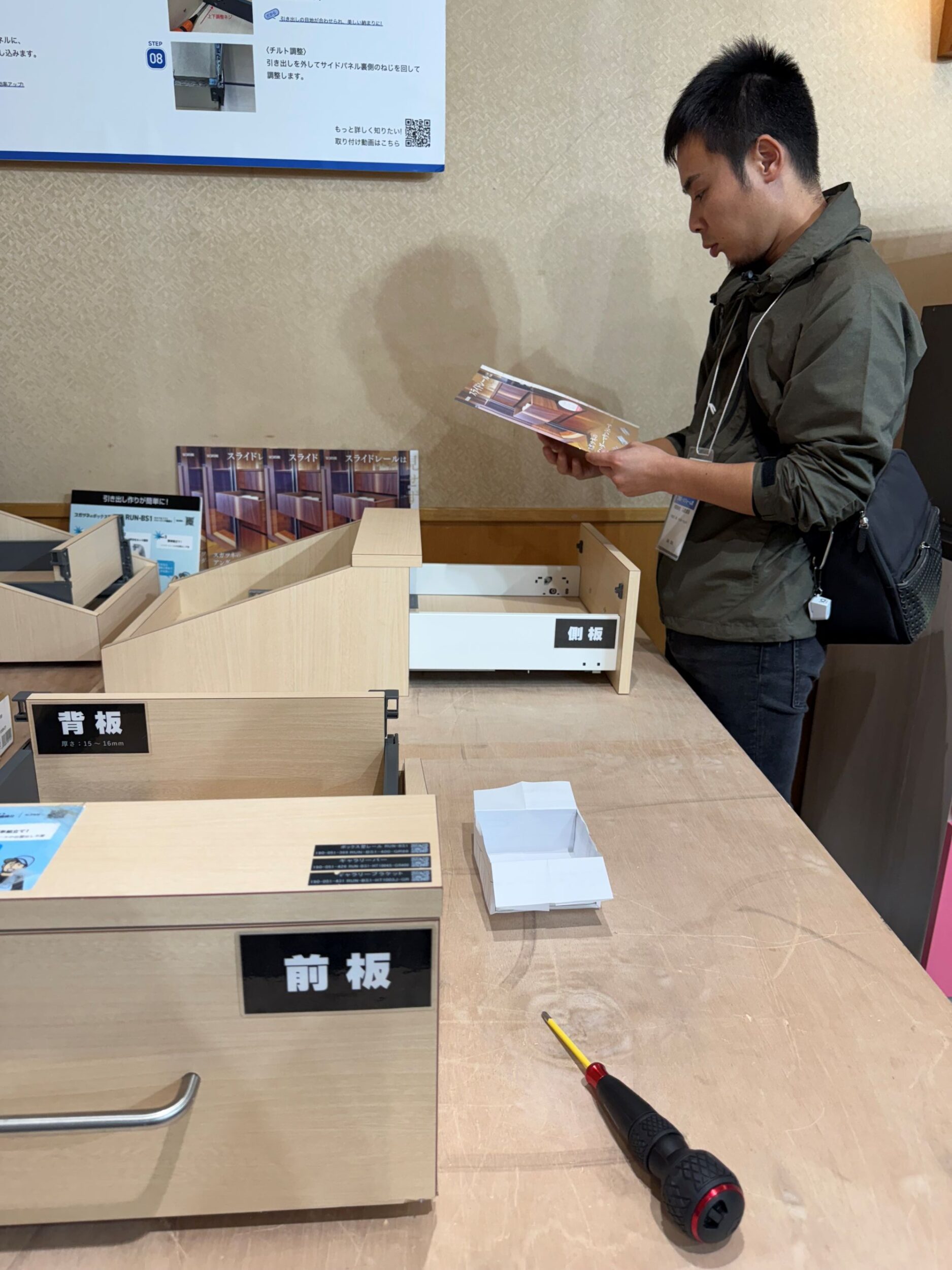 引き出しに取り付けるレールも、実際に手を動かしながら体験してみると
