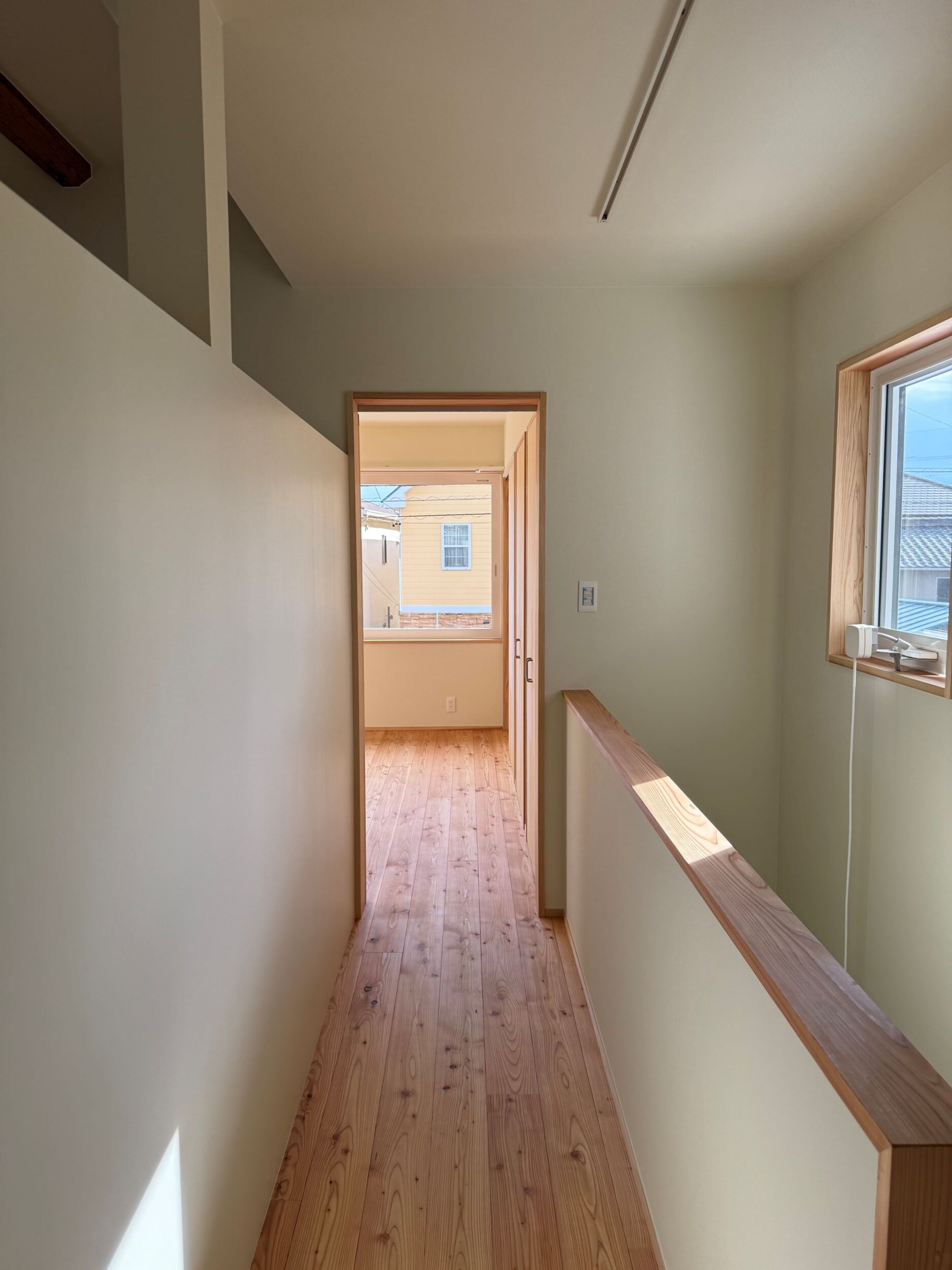 AEP塗装+ルナファーザー(紙クロス)張りで、白を基調として、室内を明るくしています。