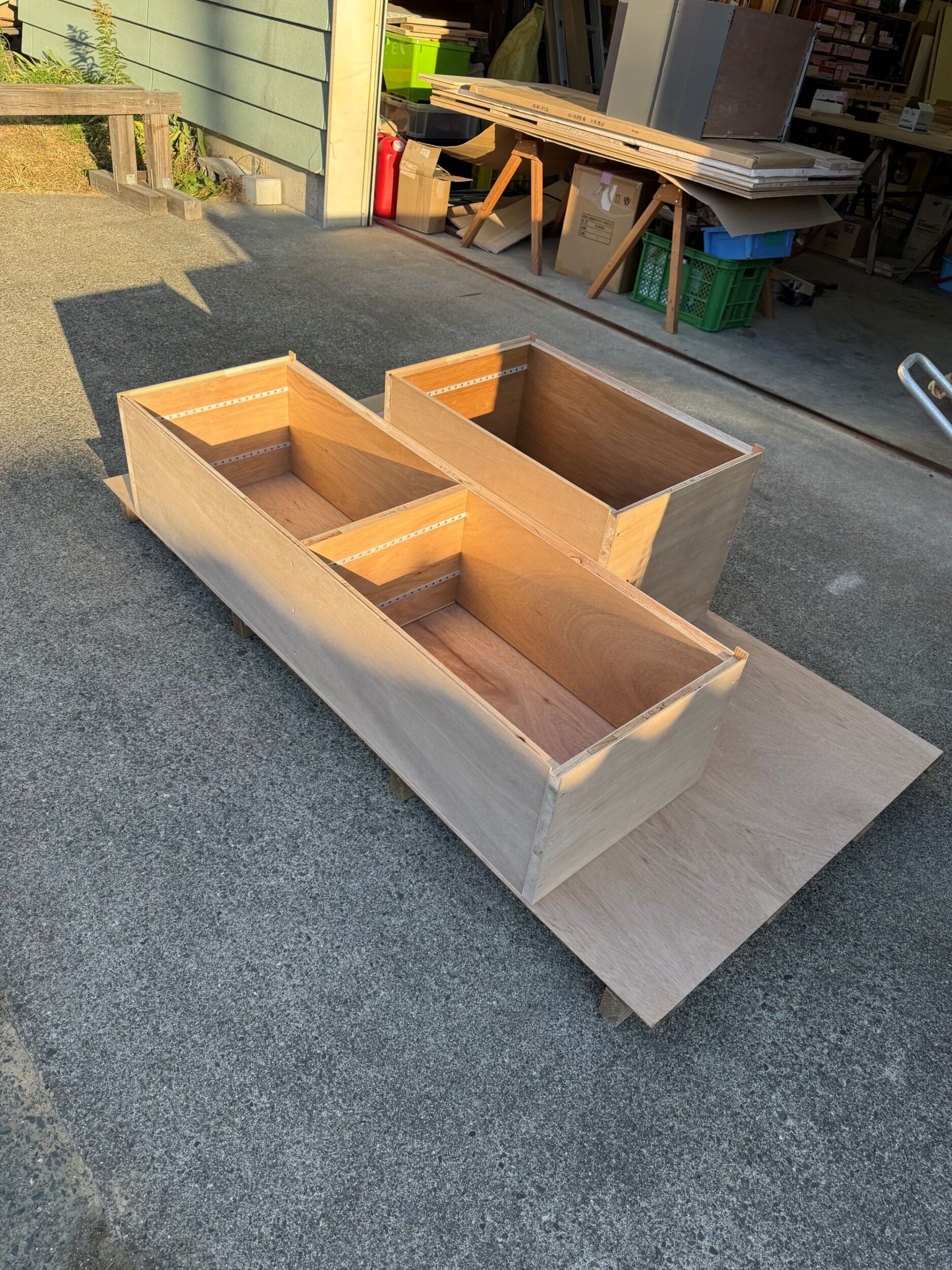 扉まわりの色に合わせ、ラワン合板を使用し、グレーに塗装。