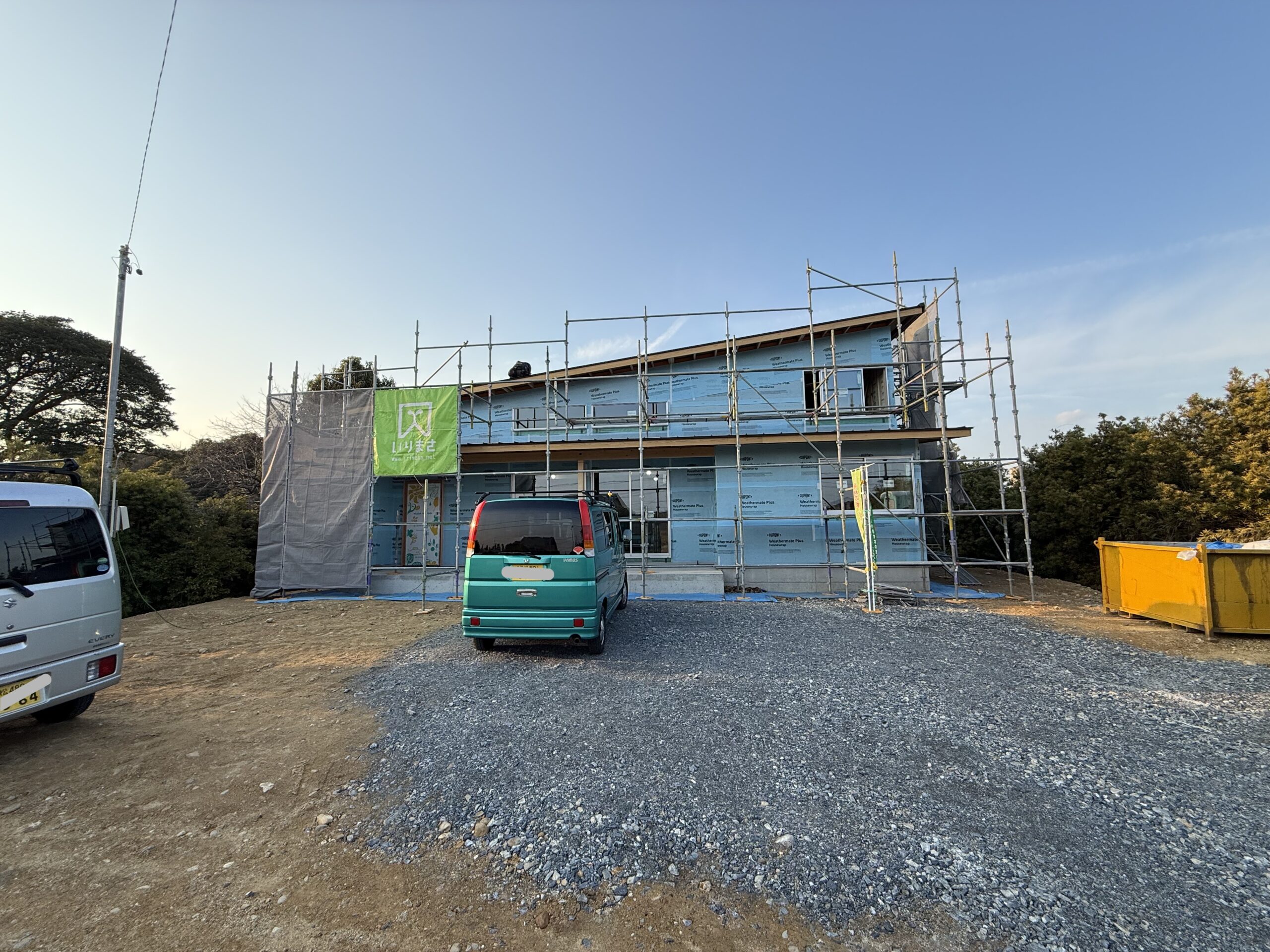新築の家づくりを進めていると、青いシートにくるまれた姿になります。