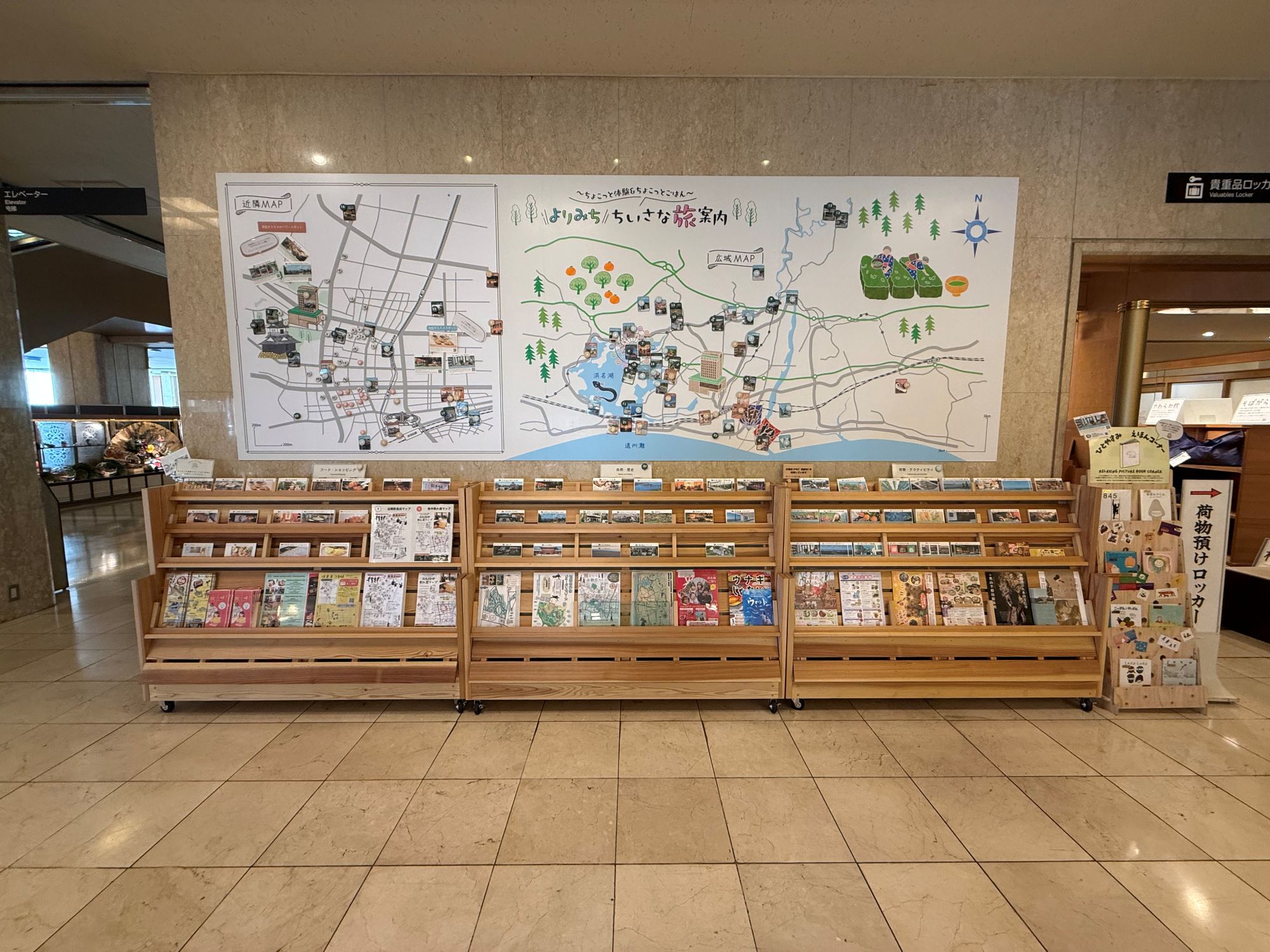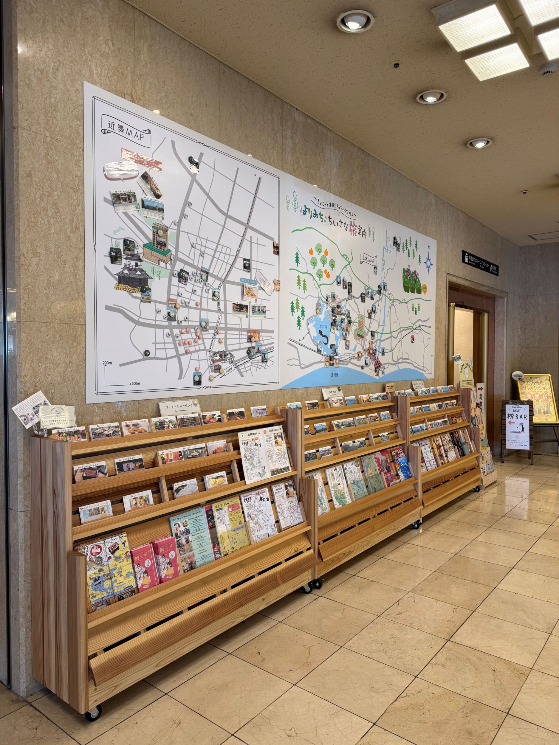 観光案内の統一されたパンフレットがきれいに並び、美しいです。