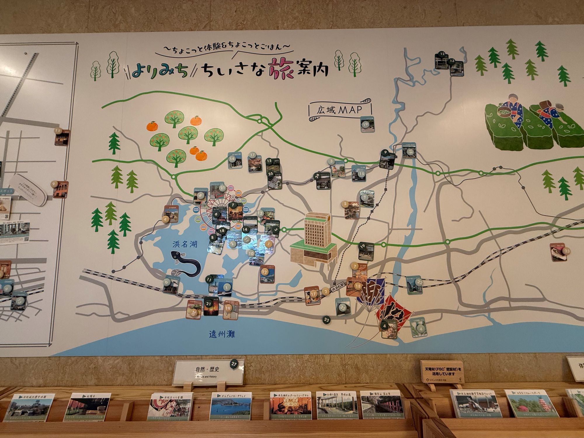 上の地図には場所がナンバリングされ、その番号の説明が下のカードに印刷されています。