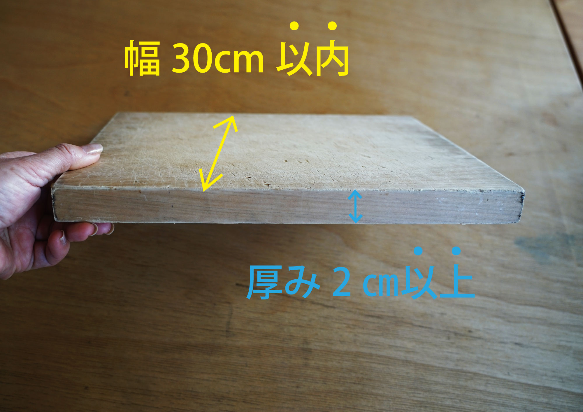 ② 厚み2cm以上のまな板が対象です