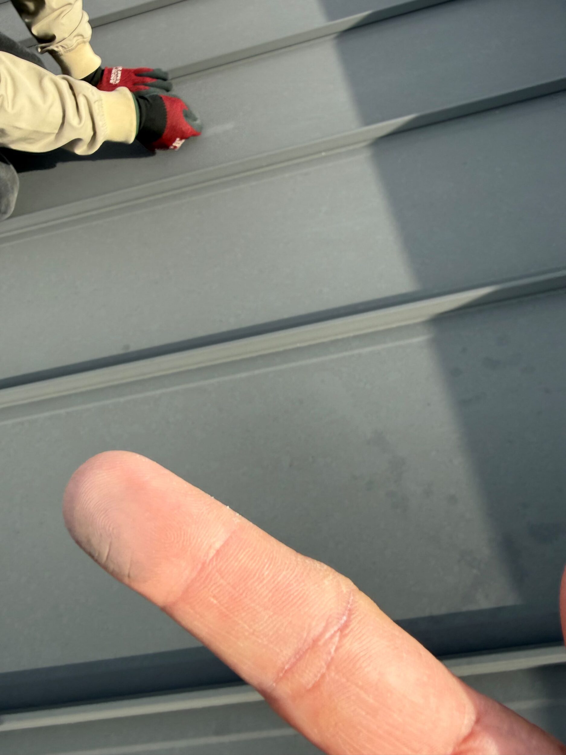 あわせて、屋根(ガルバリウム鋼板)の状態確認のため、実際に屋根の上にも登りました。