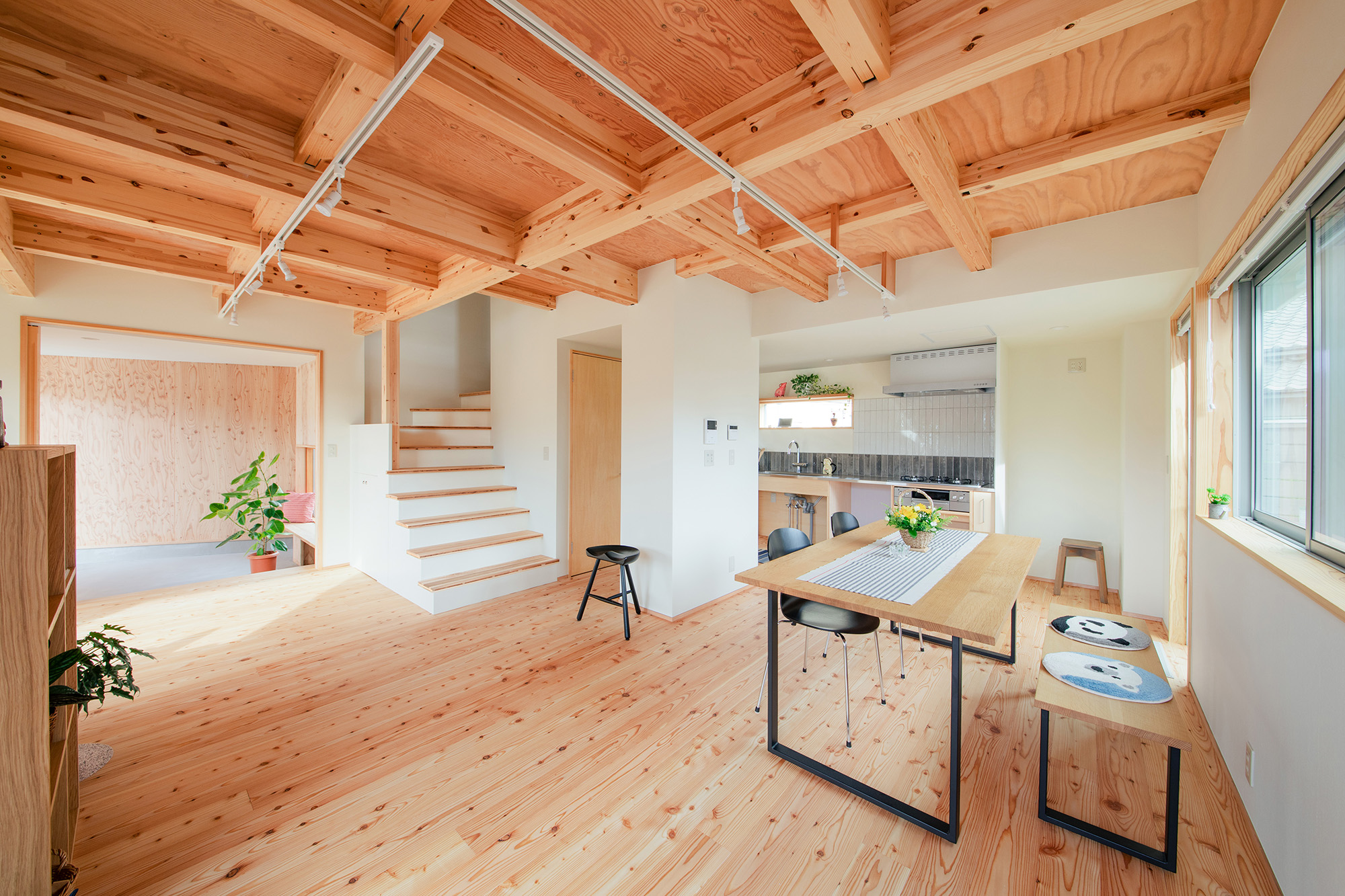 構造用合板がそのまま表れた、木造打ちっぱなしの家。