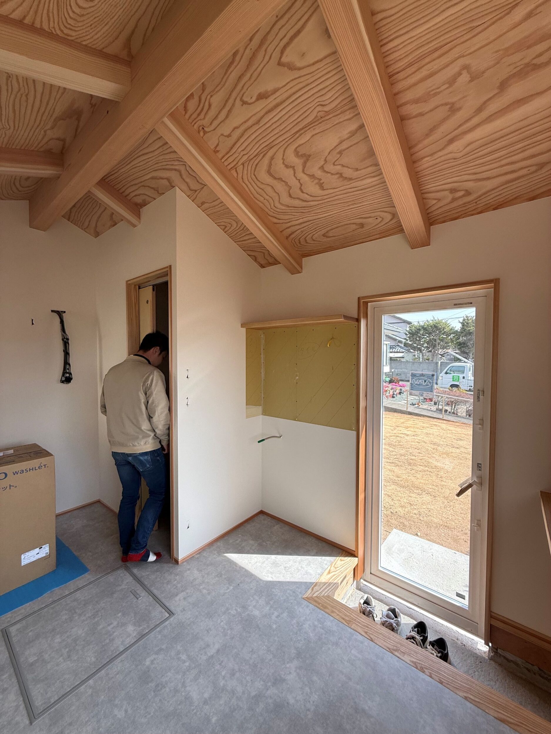 内部には、トイレとミニキッチンを設える予定です。