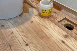 ぼくたちの家では、トイレの床に無垢床(カラマツ)を使用しています。 無塗装の板に、自然オイルを1回塗りで仕上げています。 毎日、トイレ用の床拭きシートを使って清掃していたのですが、だんだんと床が白っぽくなってきました。 … 続きを読む トイレの無垢床(カラマツ)が白くなった理由と、きれいに戻す方法