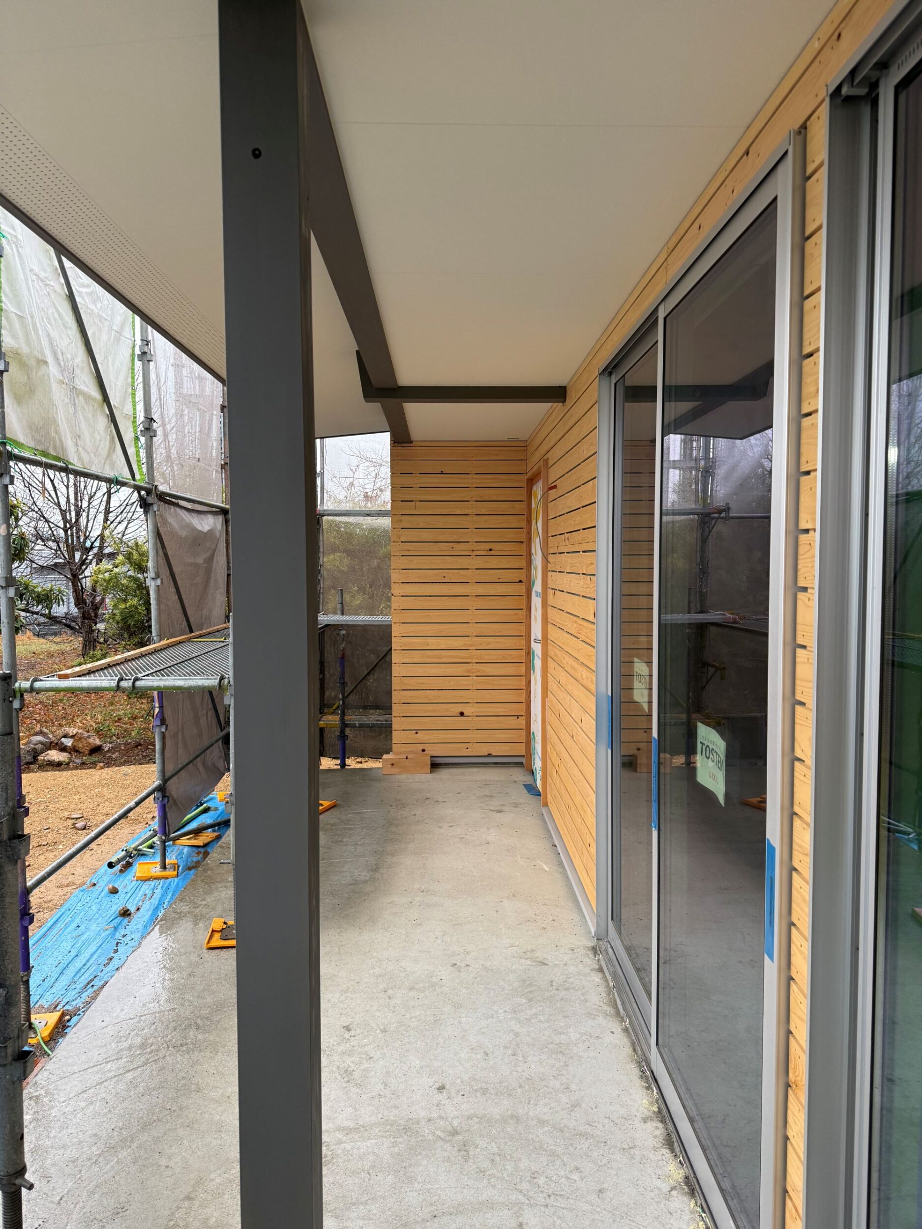 本日は雨が降っていますが、深い軒のおかげで外壁はほとんど濡れていません。