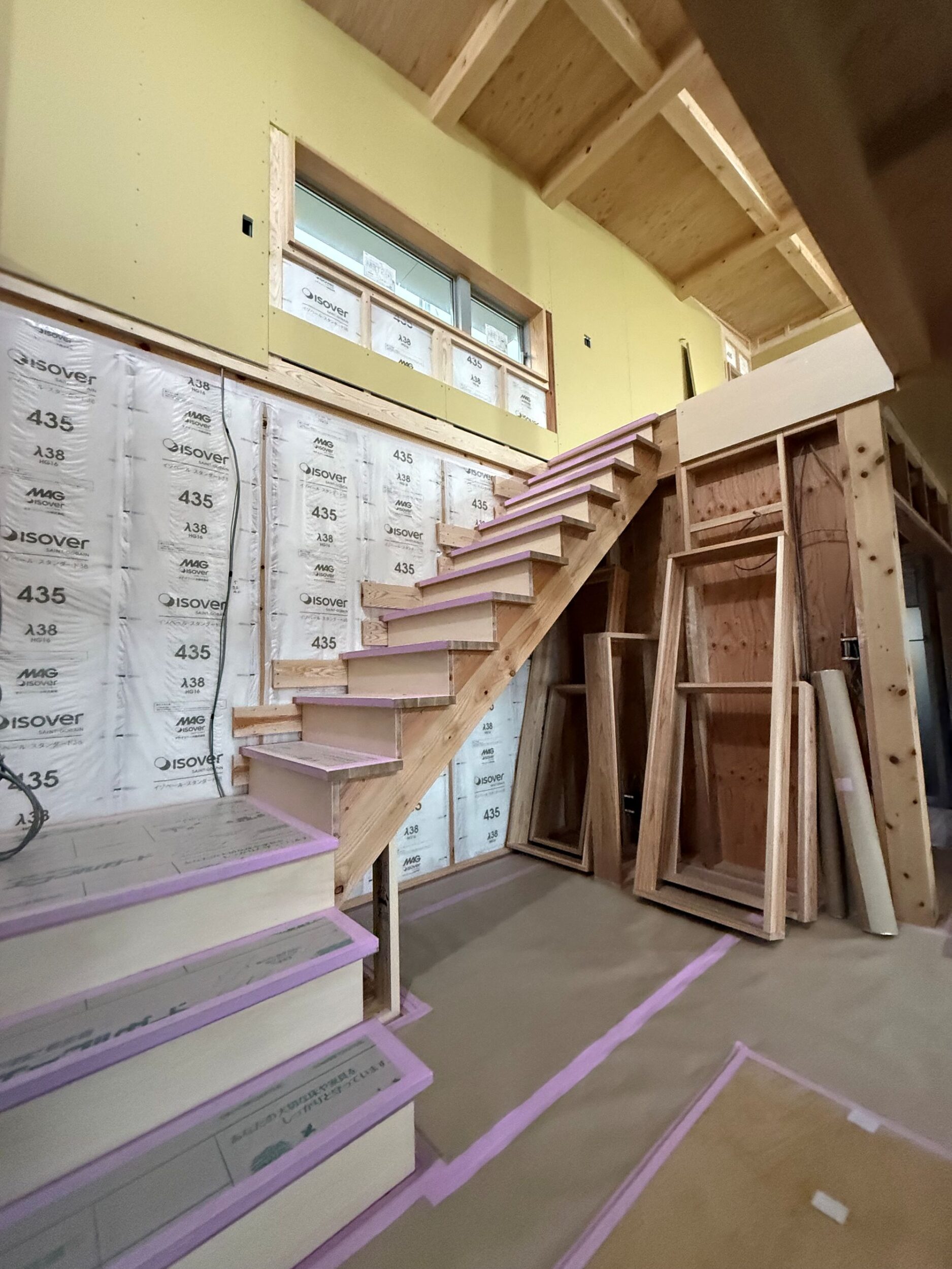 土間の仕上げが終わり、階段も完成し、空間全体のスケール感がはっきりと見えてきました。