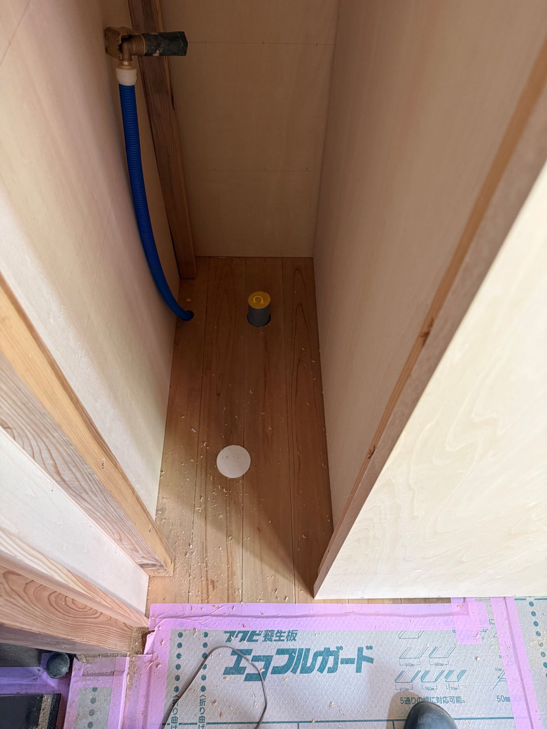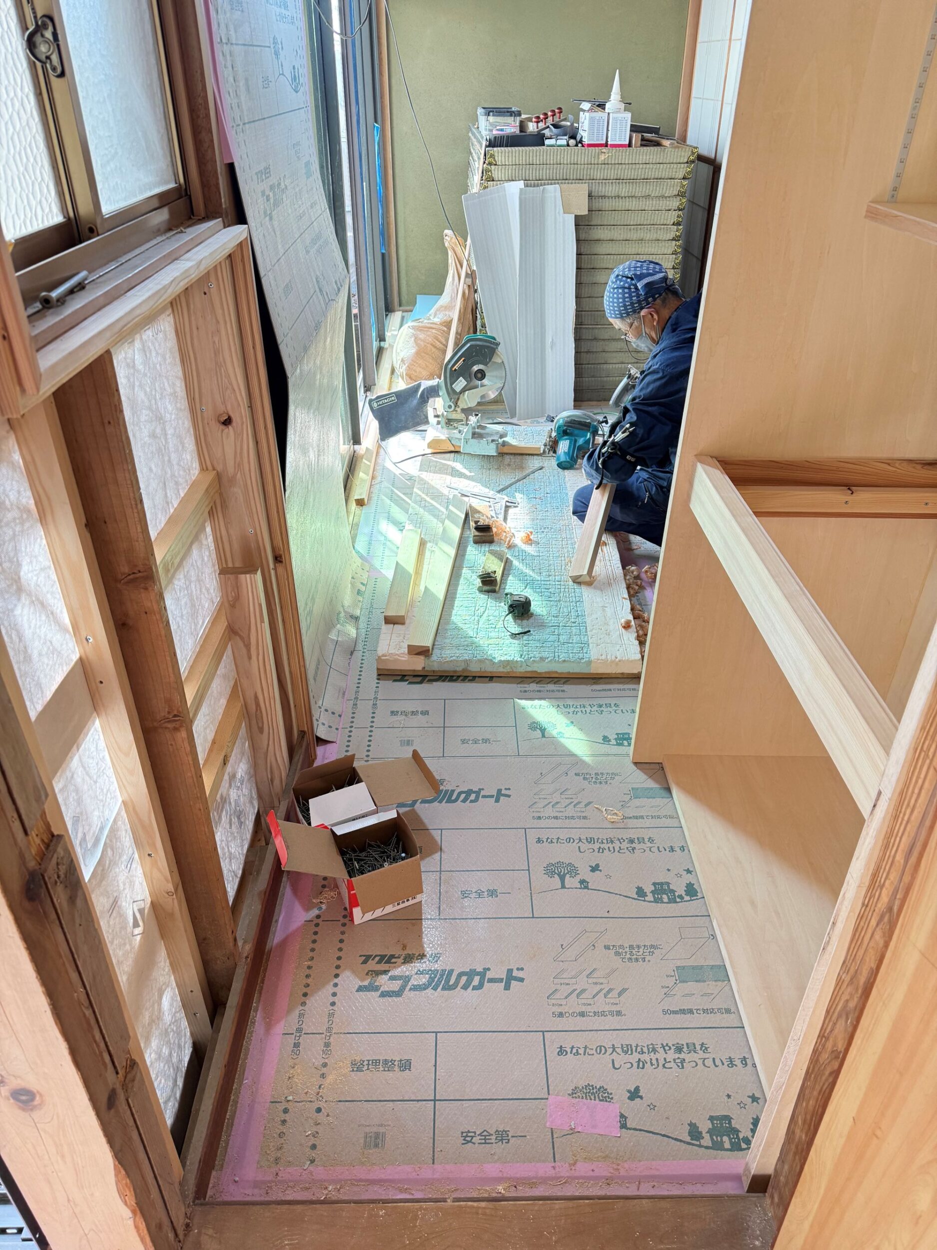 今回の工事では、既存の床を利用して、造作家具を設置する箇所があります。