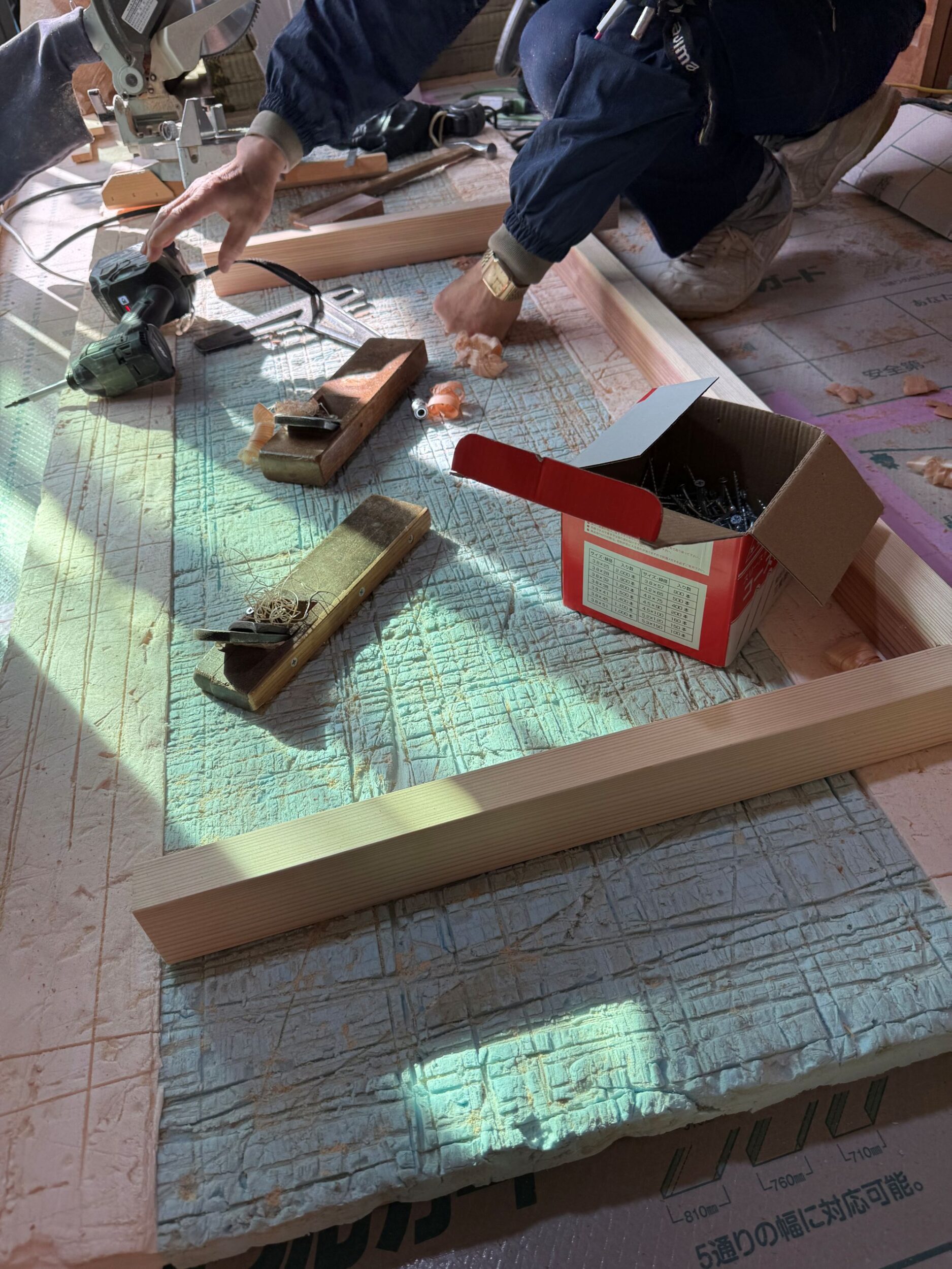 完成してしまえば、ほとんど見えなくなる部分ですが、この工程を丁寧に行うことで、造作家具が床や壁と自然につながり、「後から置いた感じ」のない、すっきりとした仕上がりになります。